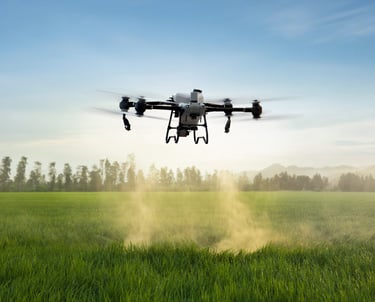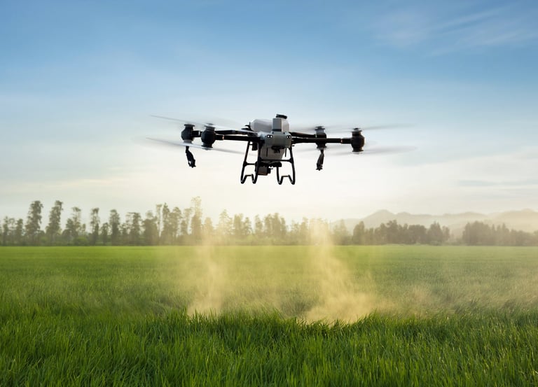 Pulverização agrícola precisa e eficiente com drones modernos.